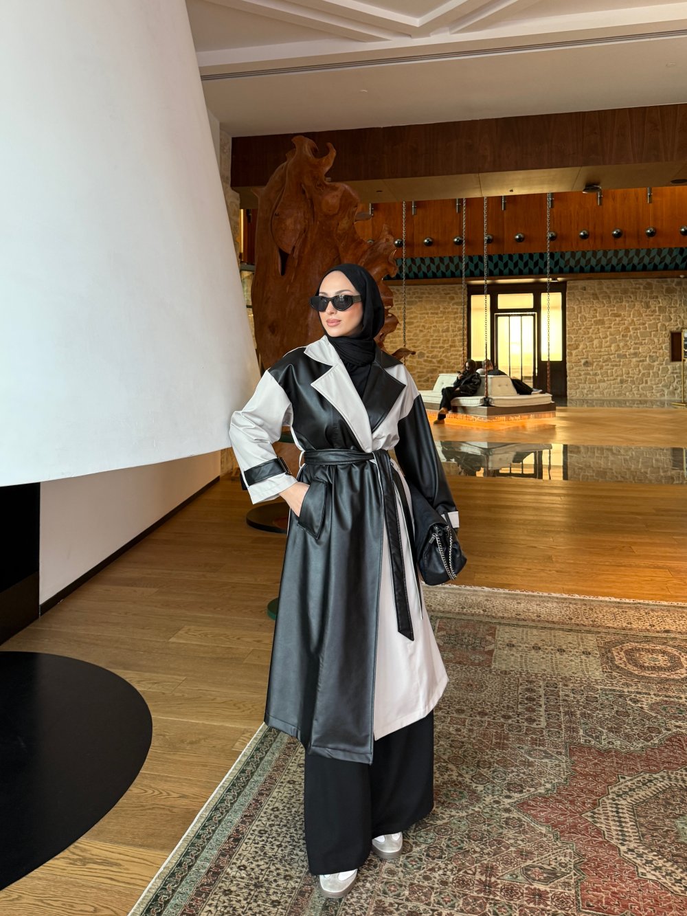 Trençkot İki Farklı Kumaş Detaylıdır.