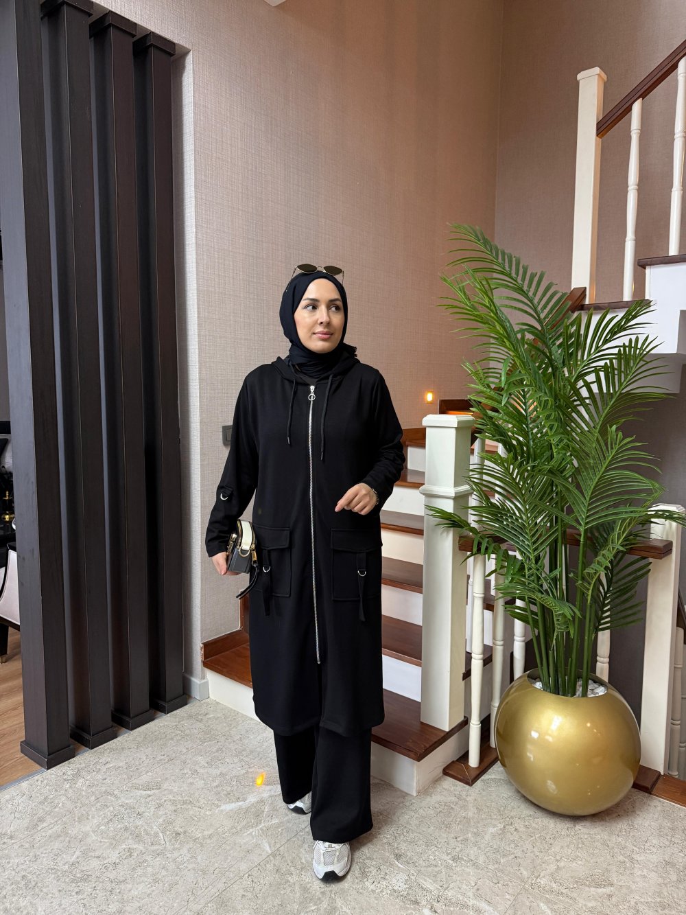 Kap boy 105 cm’dir. Önünde metal dişli fermuarı, yanlarda cepleri bulunmaktadır. Kapüşonludur.