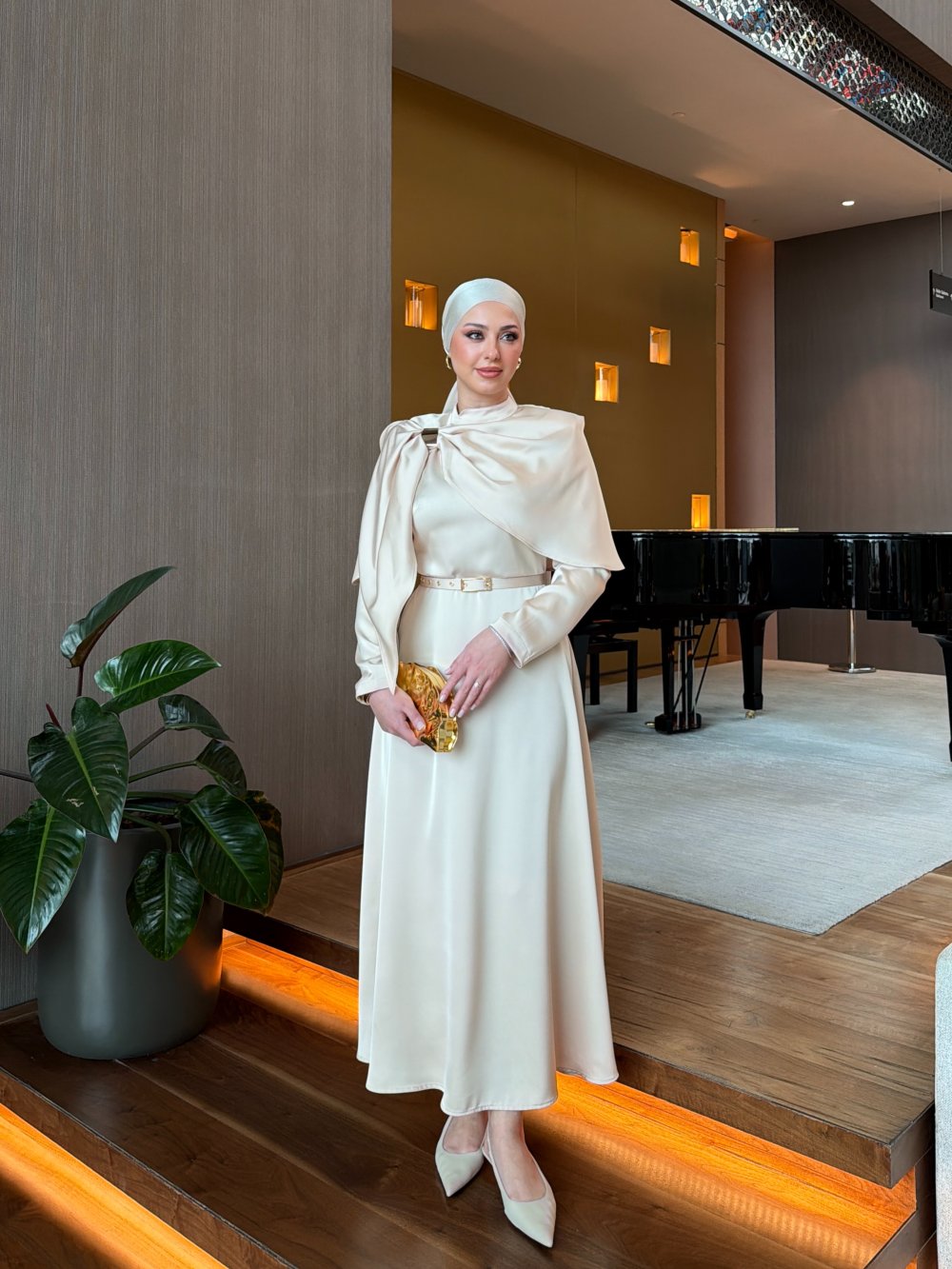 Elbise Omuzunda Aksesuar Detayı Vardır.