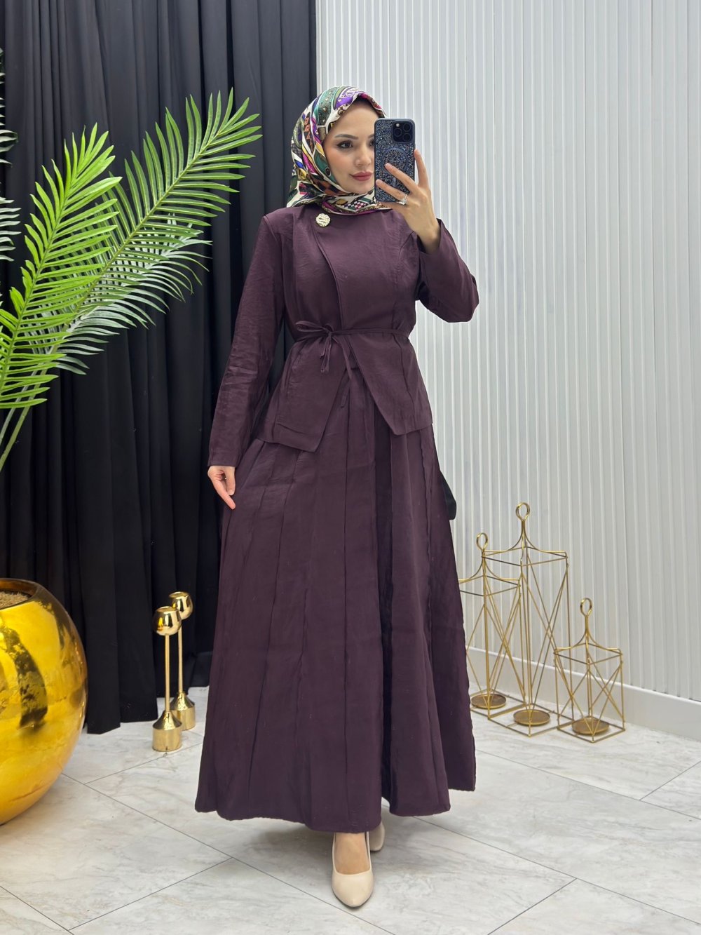 Ceket önden düğmeli belden kemerli etek Ürünün Boyu:95/100 cm