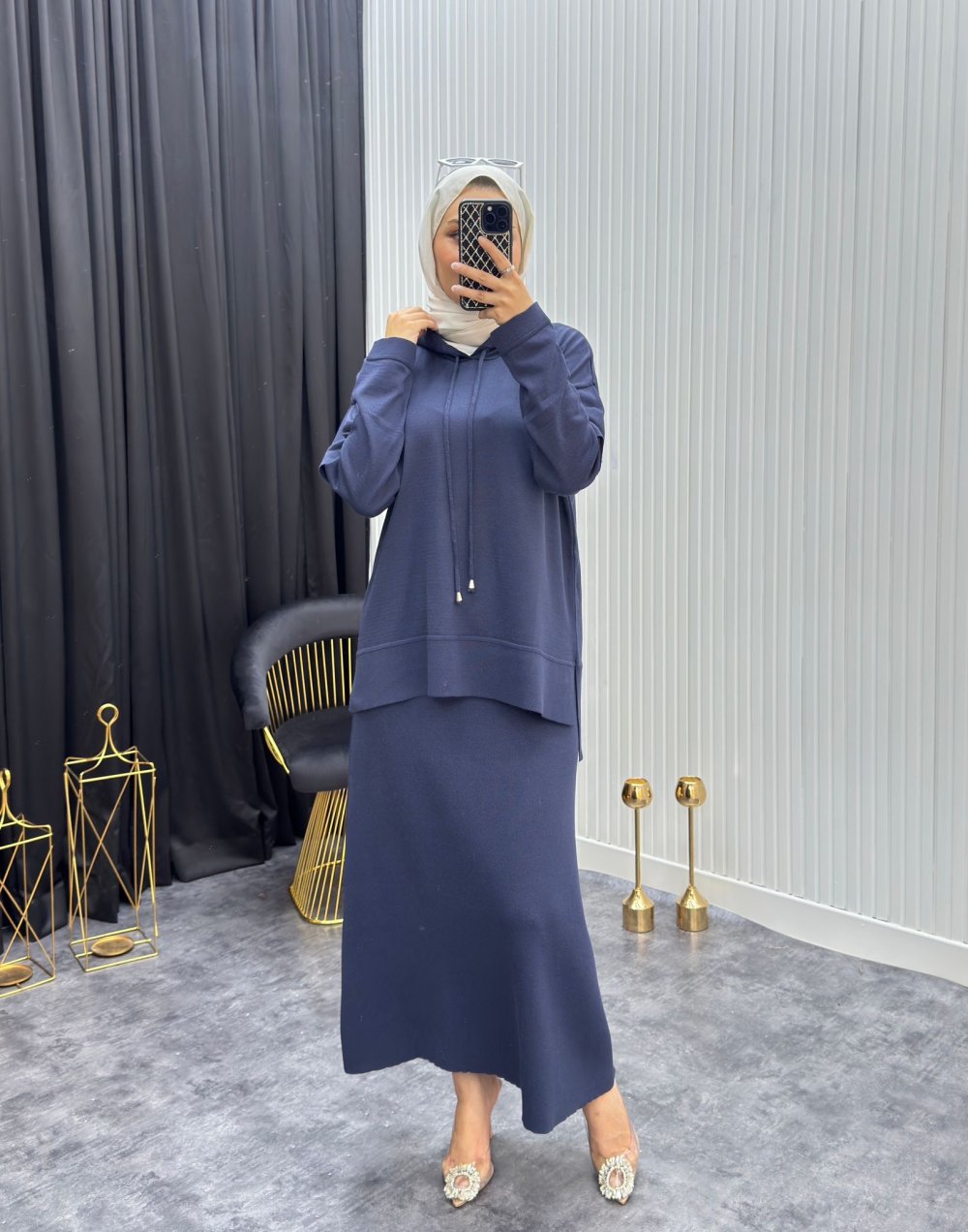etek beli lastikli bluz kapüşonludur