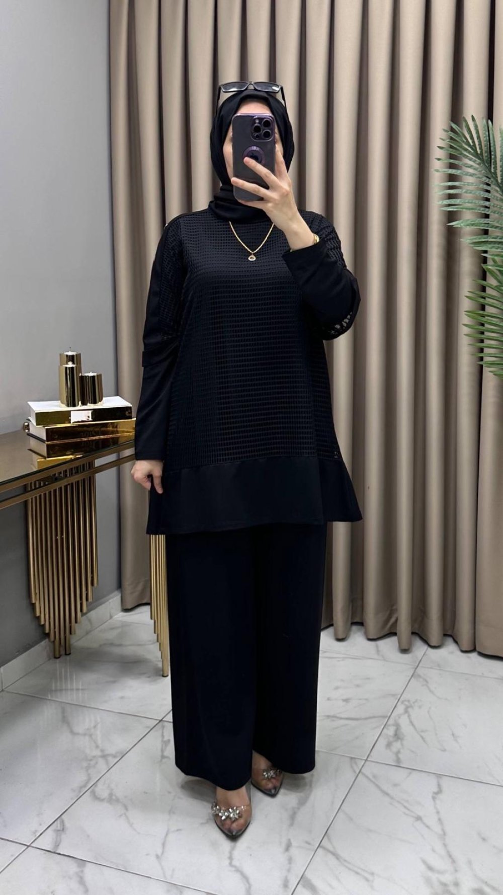 Ayben Fileli Üçlü Takım Siyah