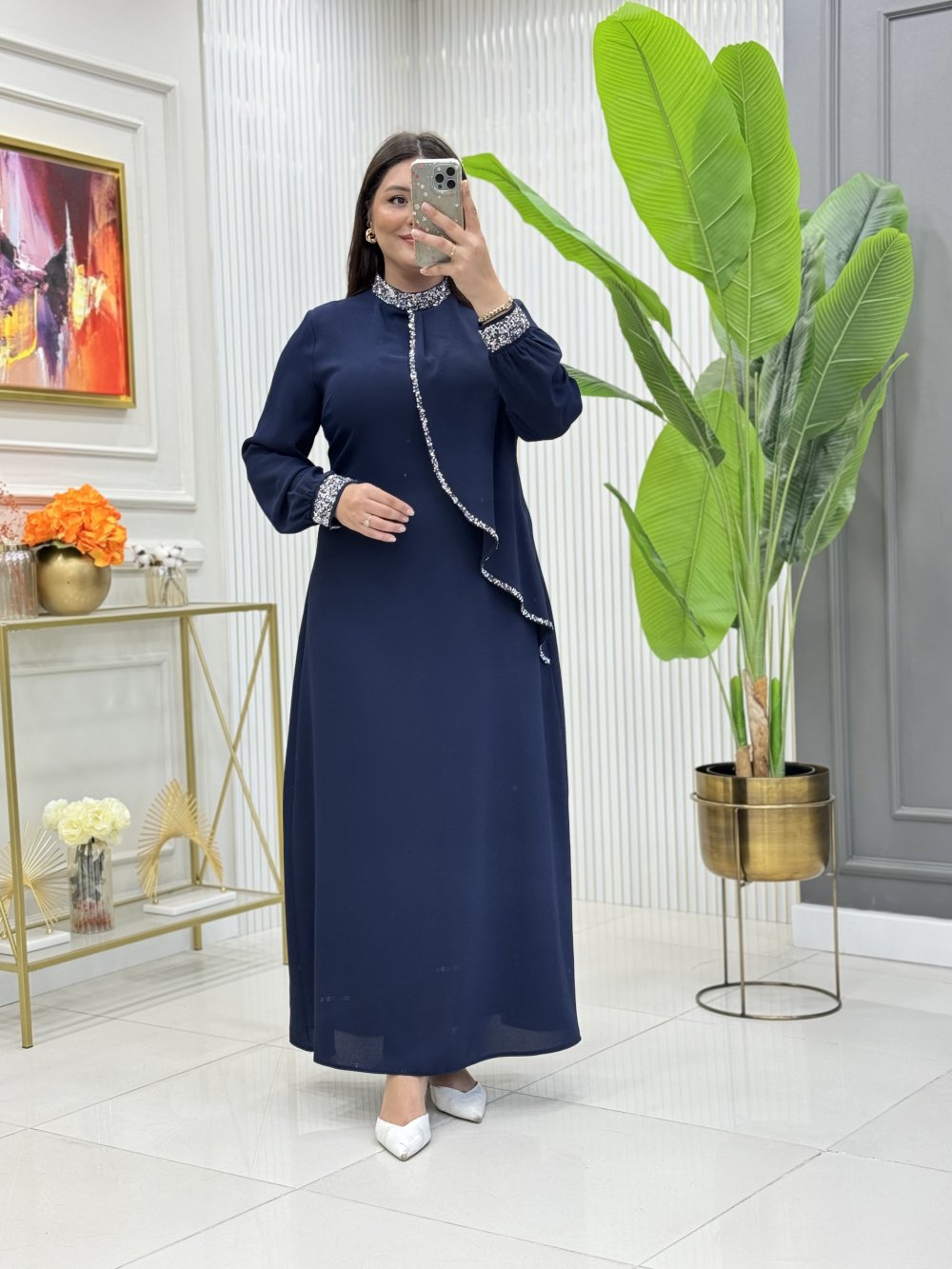 Kreplin kumaştır, sırttan fermuarlıdır.