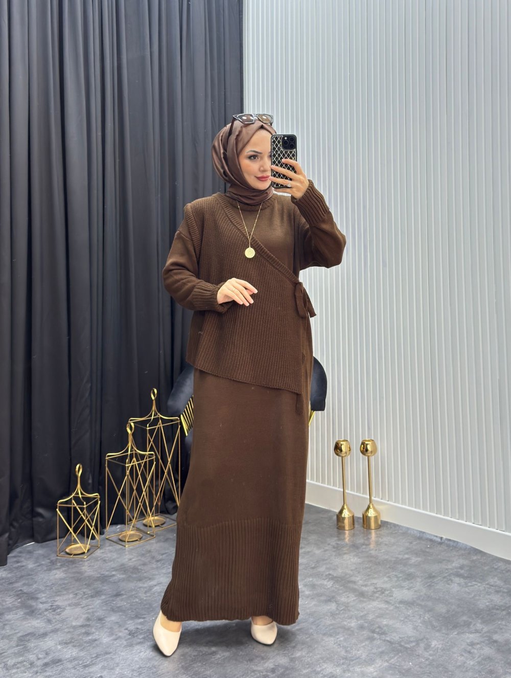 yelek elbise olmak üzere 2 parçadan oluşmaktadır yelek bağcıklıdır elbise