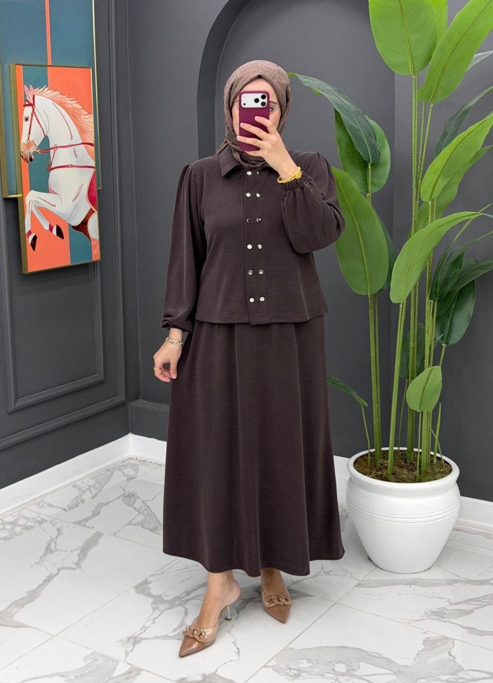 Bergüzar etekli takım Kod= 1677 38-40-42-44 beden Pike kumaş Tunik boyu 58 cm Etek boyu 92 cm