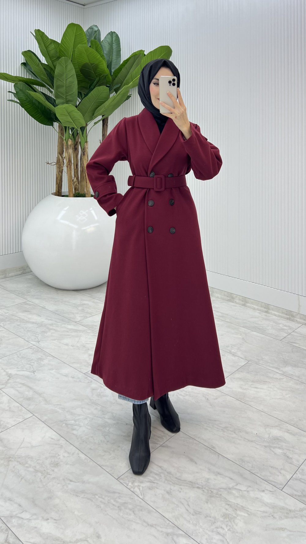 Bordo Premium Kaşe Kaban Tesettür Giyim
