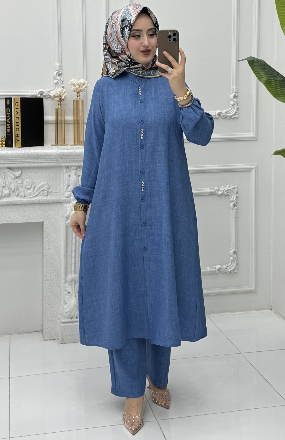 Buse Tunik Takım İndigo