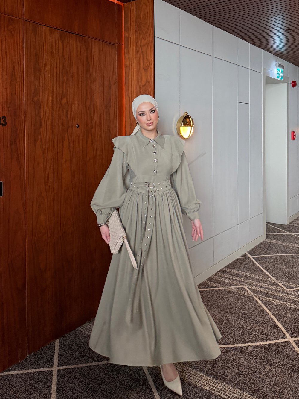 Elbise Kuş Gözü Kemer Detayı Mevcuttur.