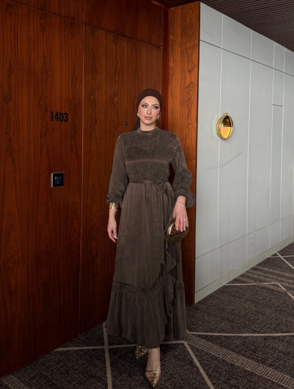 Elbise Etek Ucu Asimetrik Fırfır Detaylıdır.