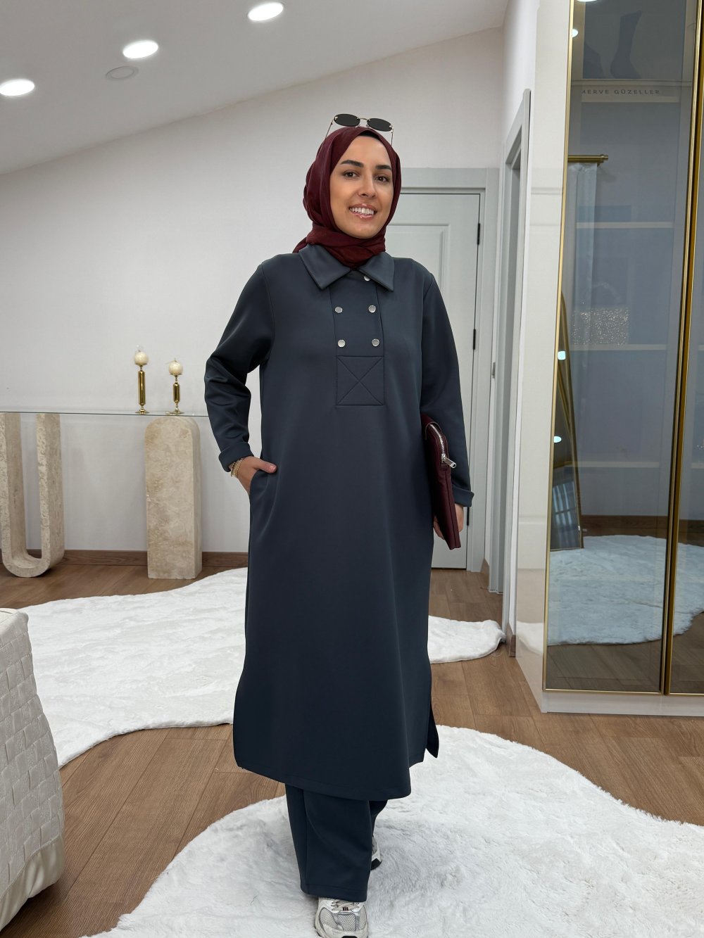 Çıtçıtlı Detaylı Maksi Boy Scuba Takım Füme