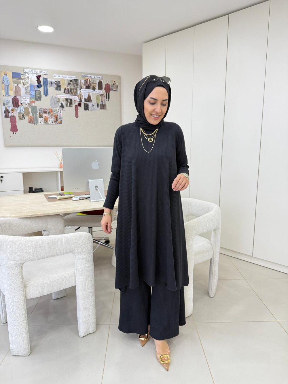 Tunik boy 100 cm, yanlar 110 cm’dir.
