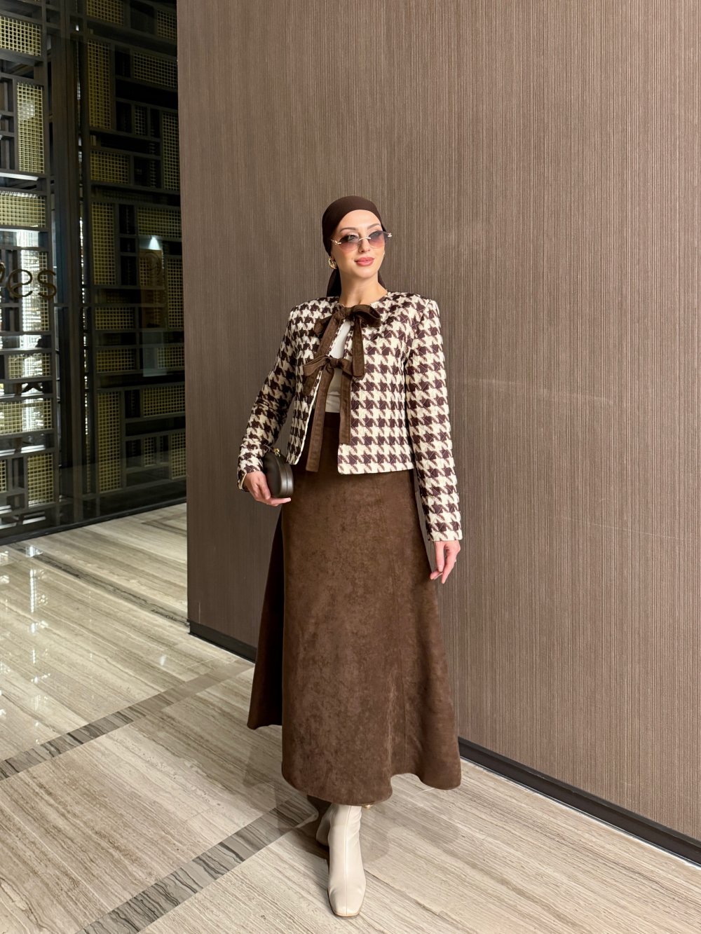 Takım Ceket Kapitone Kumaştır. Etek Süet Kumaştır.