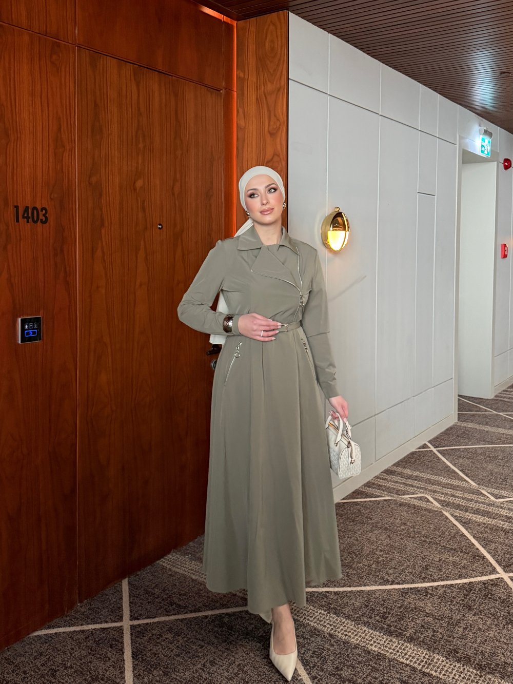 Elbise Yandan Yarıya Kadar Fermuarlıdır.