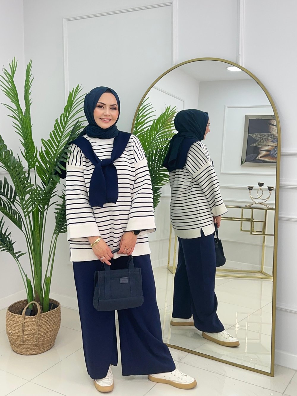 FULARLI TRİKO TAKIM - LACİVERT