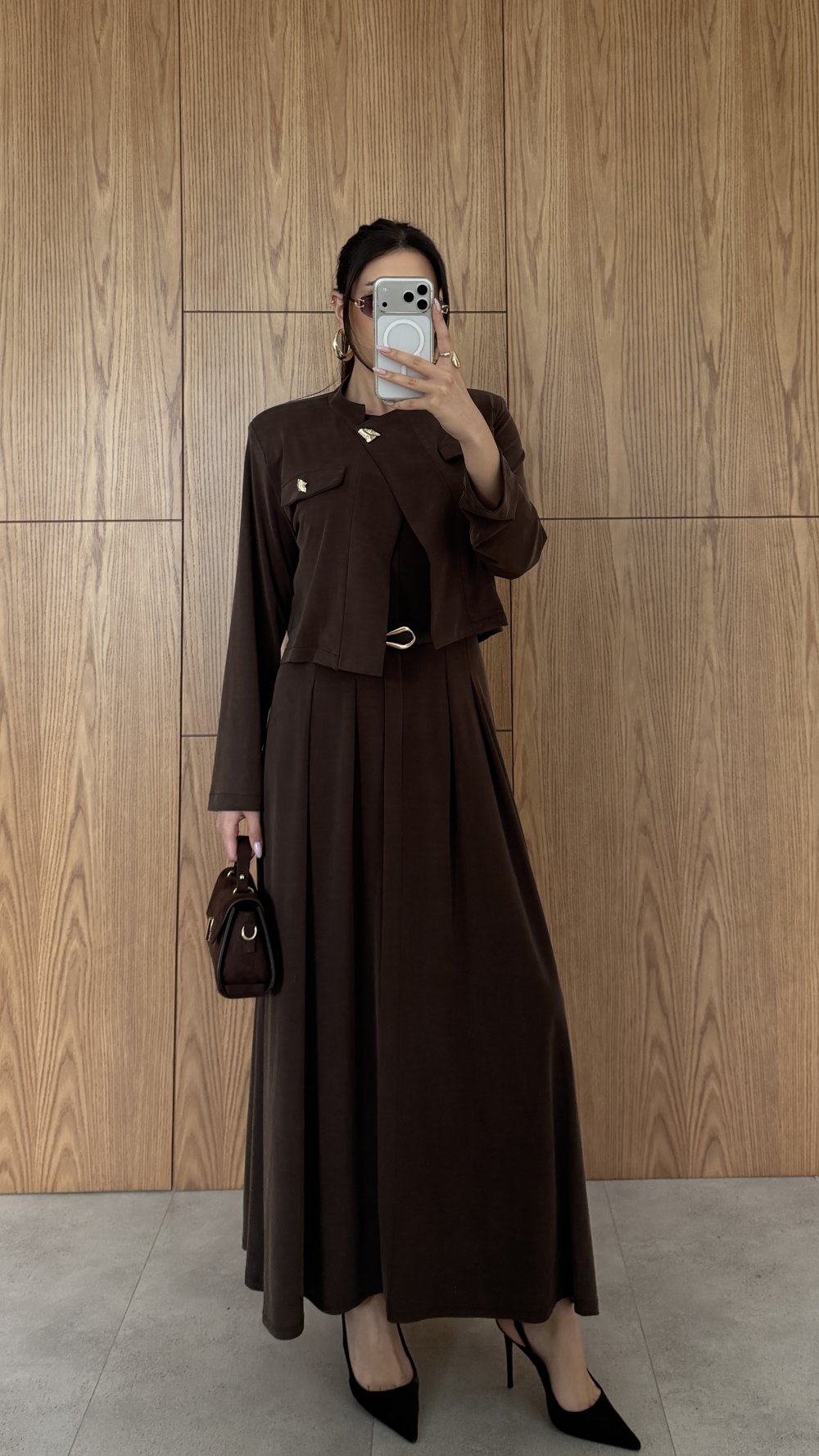 Gülsüm Elbise Takım Kahverengi