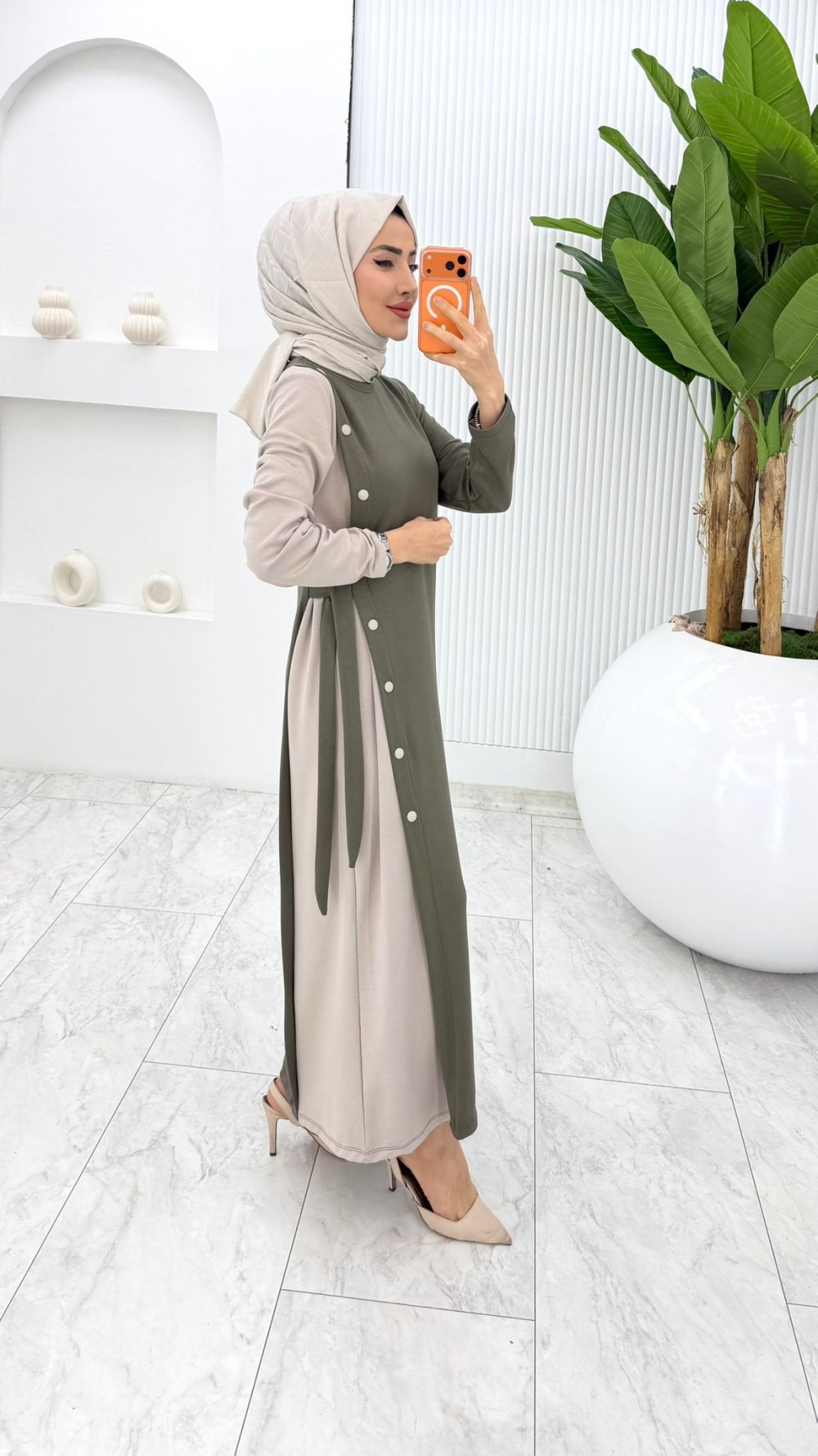 Haki Nilda Elbise Tesettür Giyim