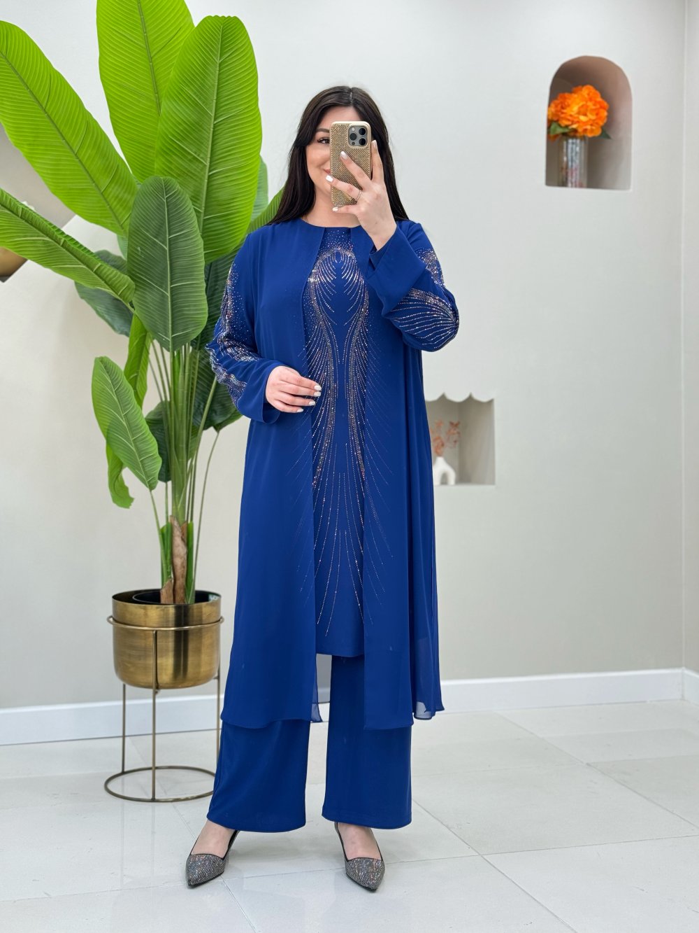 Dışı şifon içi sandy kumaştır.