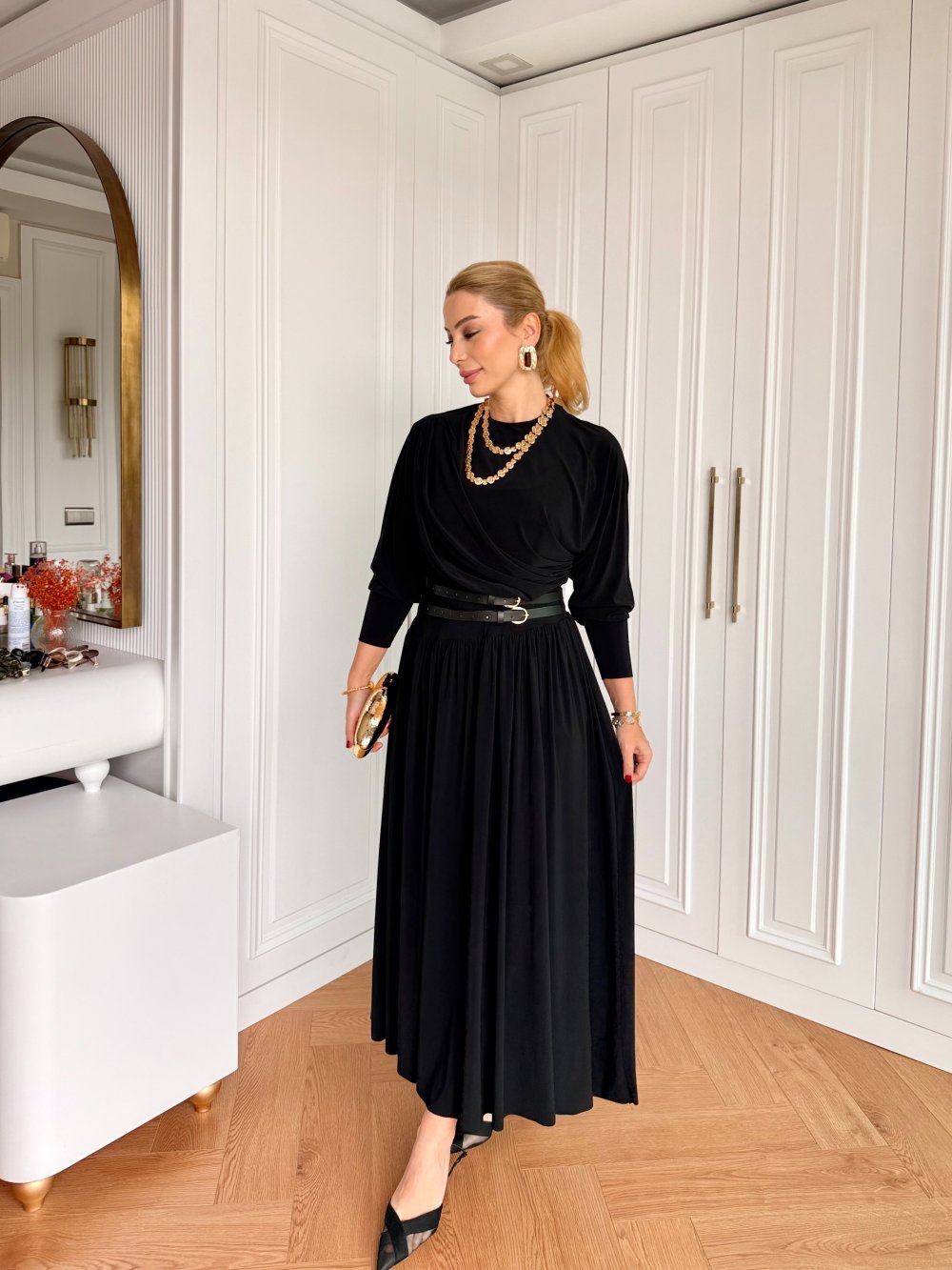 Elbise Önünde Drape Detayı Mevcuttur