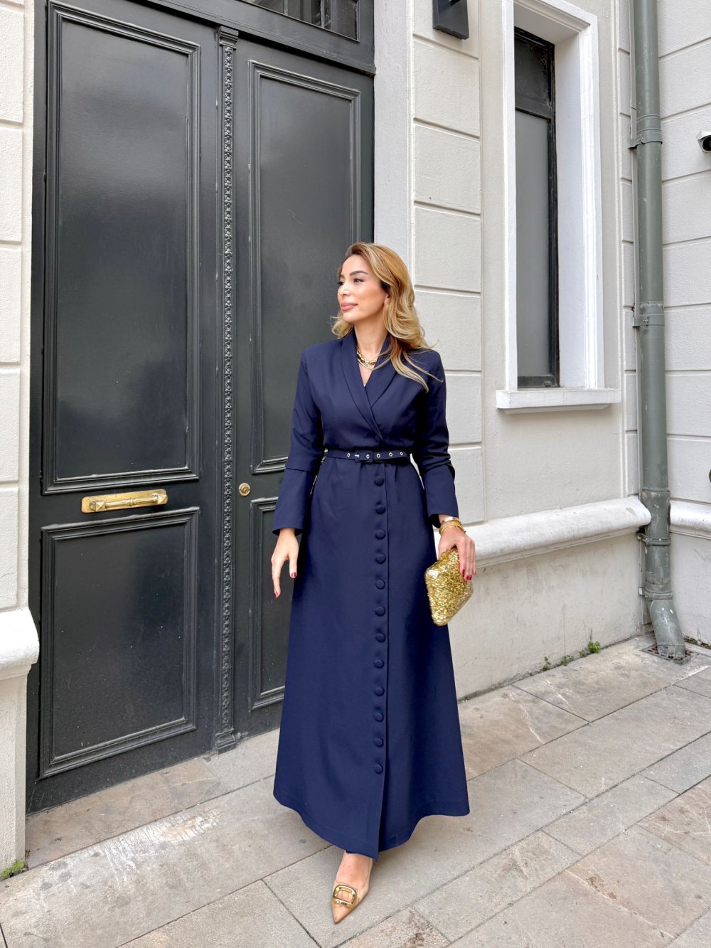 Elbise Önden Düğme Detaylıdır.