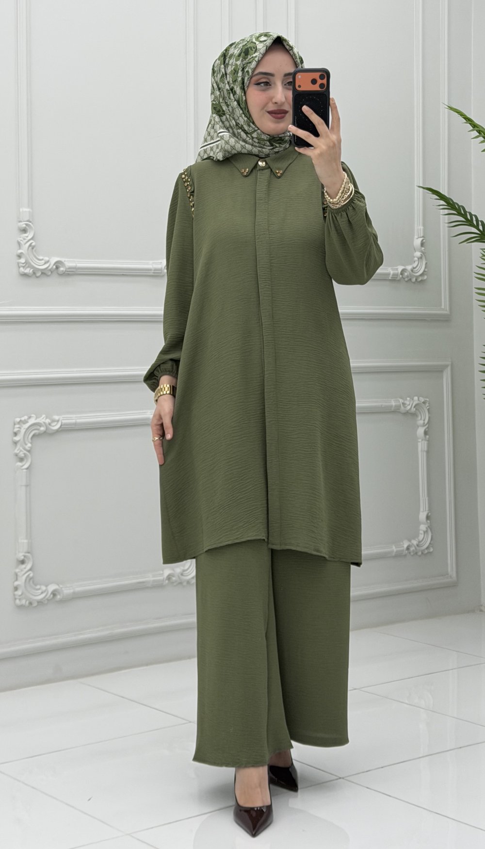 Işıltı  Takım, hem iş hem de günlük hayatınızda rahatlıkla tercih edebileceğiniz çok yönlü bir parçadır. Şıklığı konforla buluşturan bu tasarım, sezonun en gözde modellerinden biri olacak!