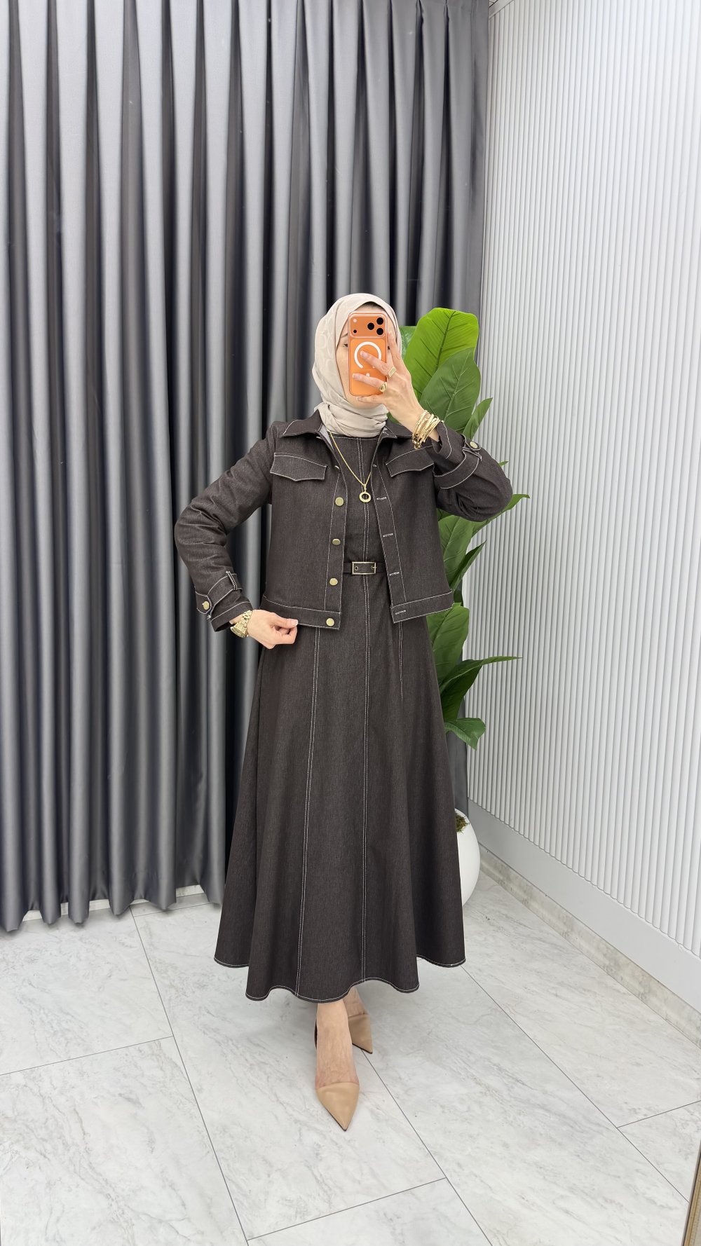 Kahve Premium Eda Kot Jile Ceket Takım Tesettür Giyim