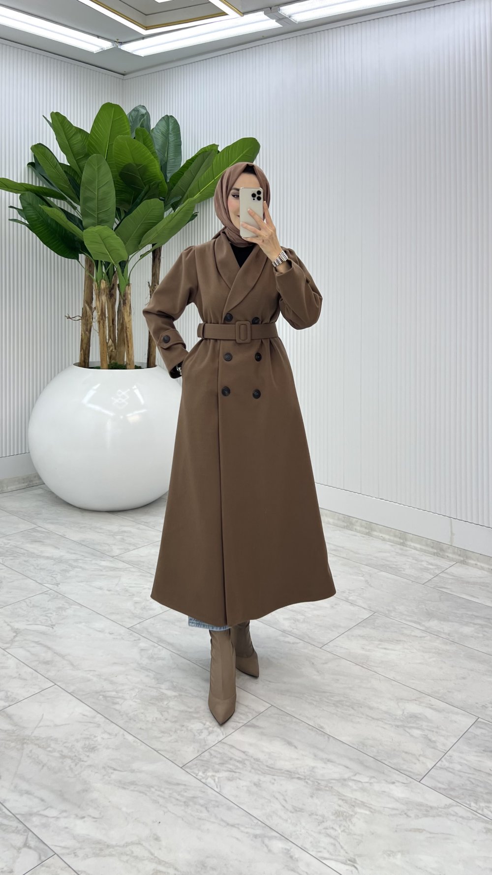 Kahve Premium Kaşe Kaban Tesettür Giyim