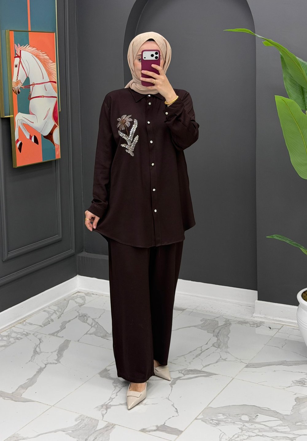 Kayra takım - kahverengi