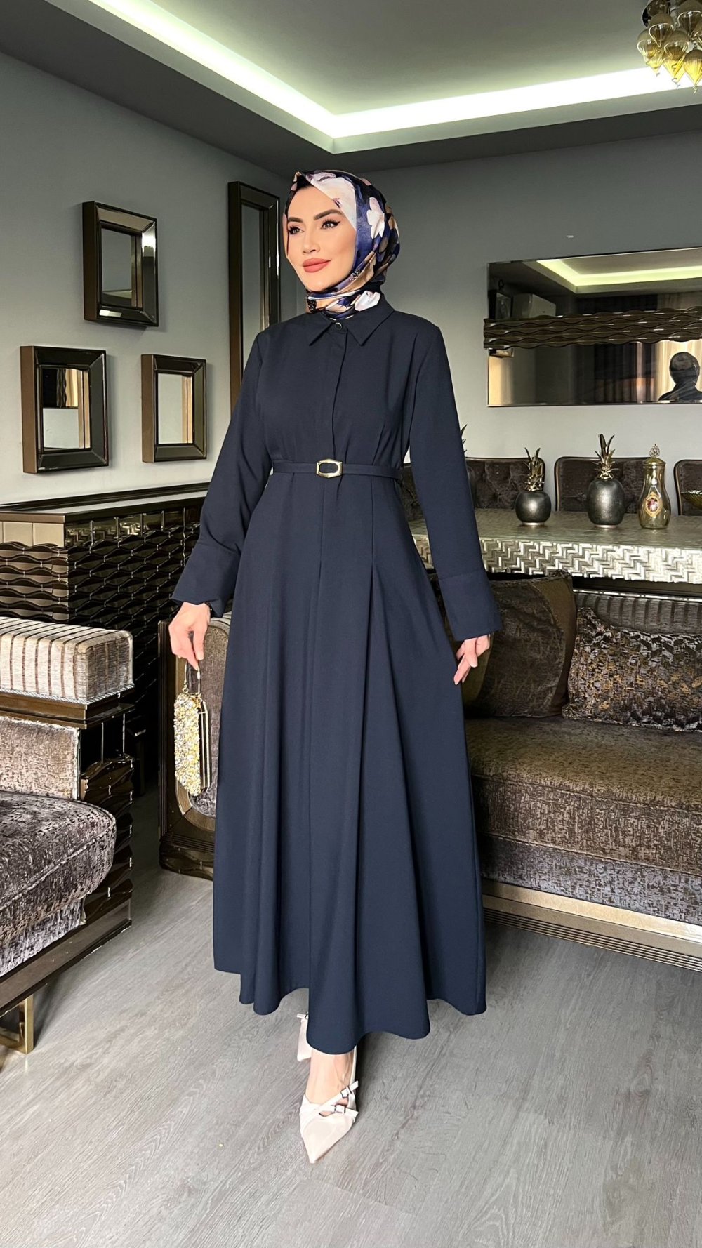 Lacivert Premıum Farah Elbise Tesettür Giyim