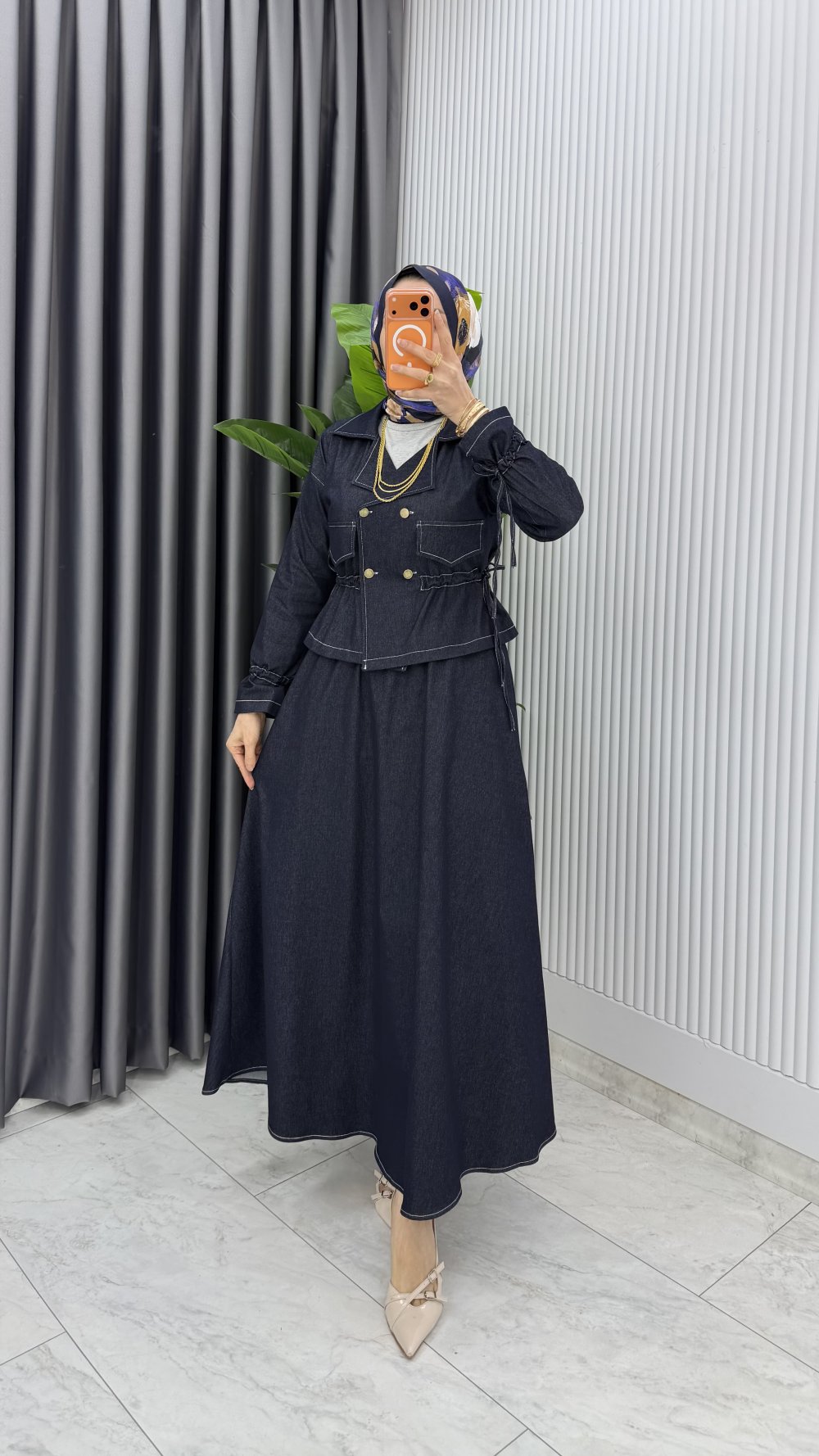 Lacivert Premium Reyhan Kot Takım Tesettür Giyim