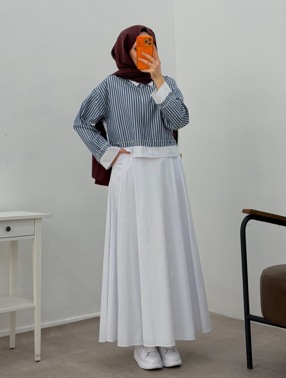 Gömlek Taş Detaylı Tam Boy Düğmeli,