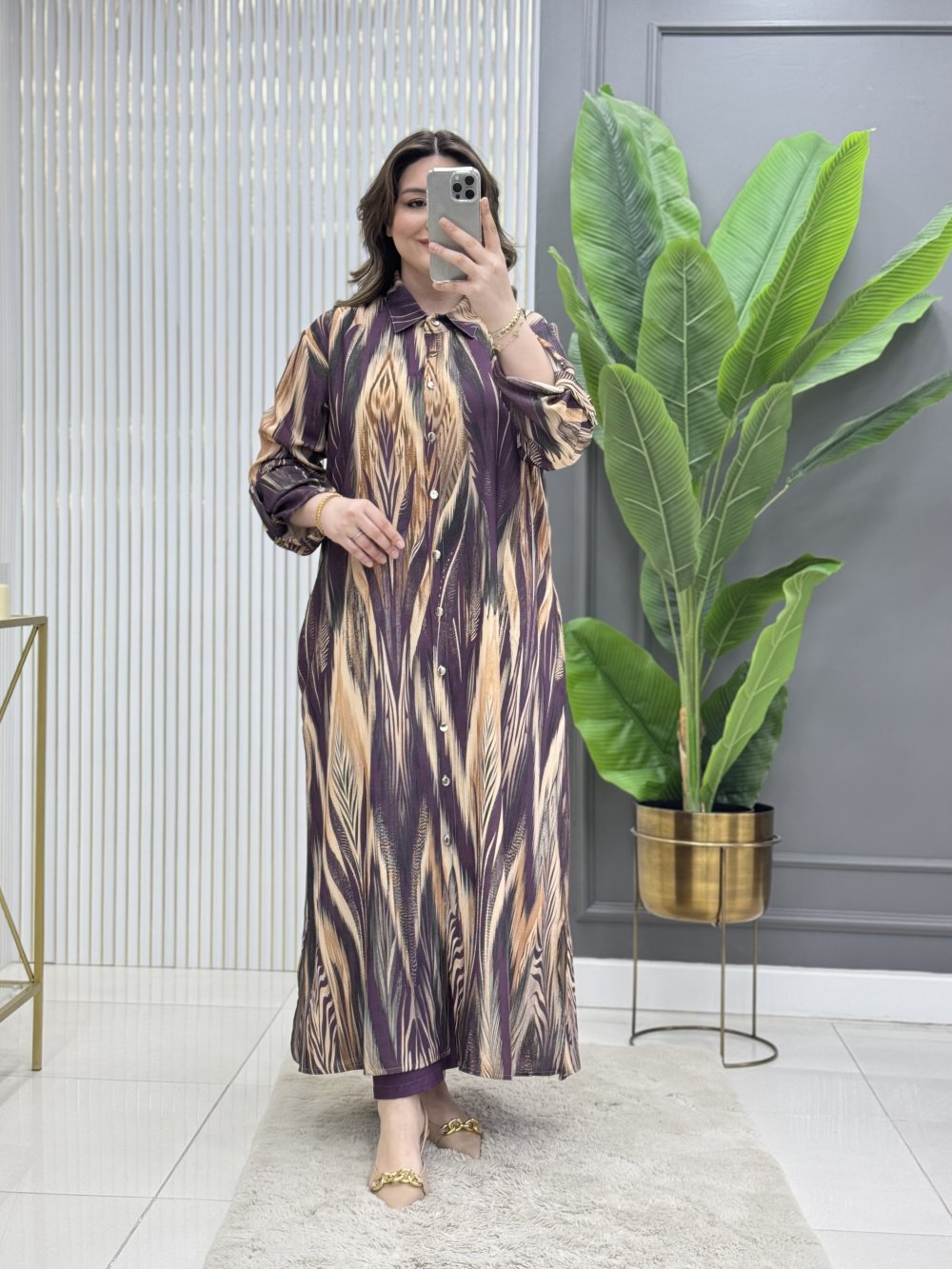 Tunik boydan düğmelidir, kolları lastiklidir.