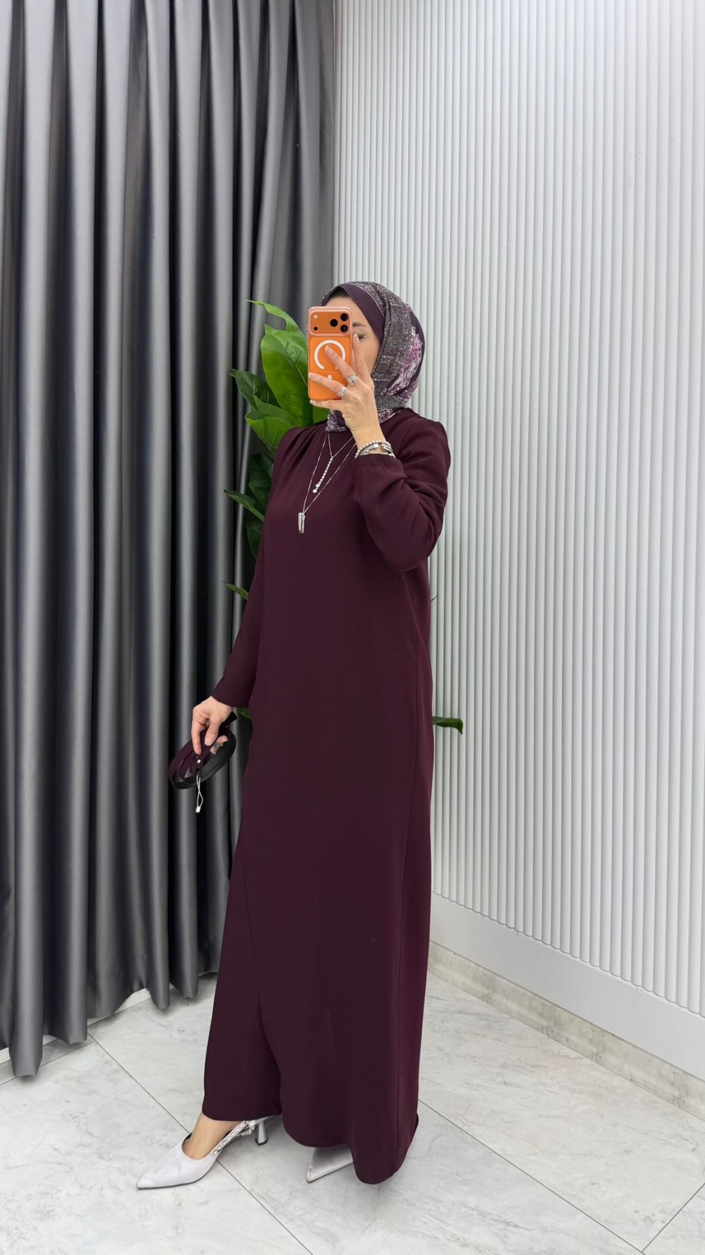 Mürdüm Kemerli Nalan Tulum Elbise Tesettür Giyim