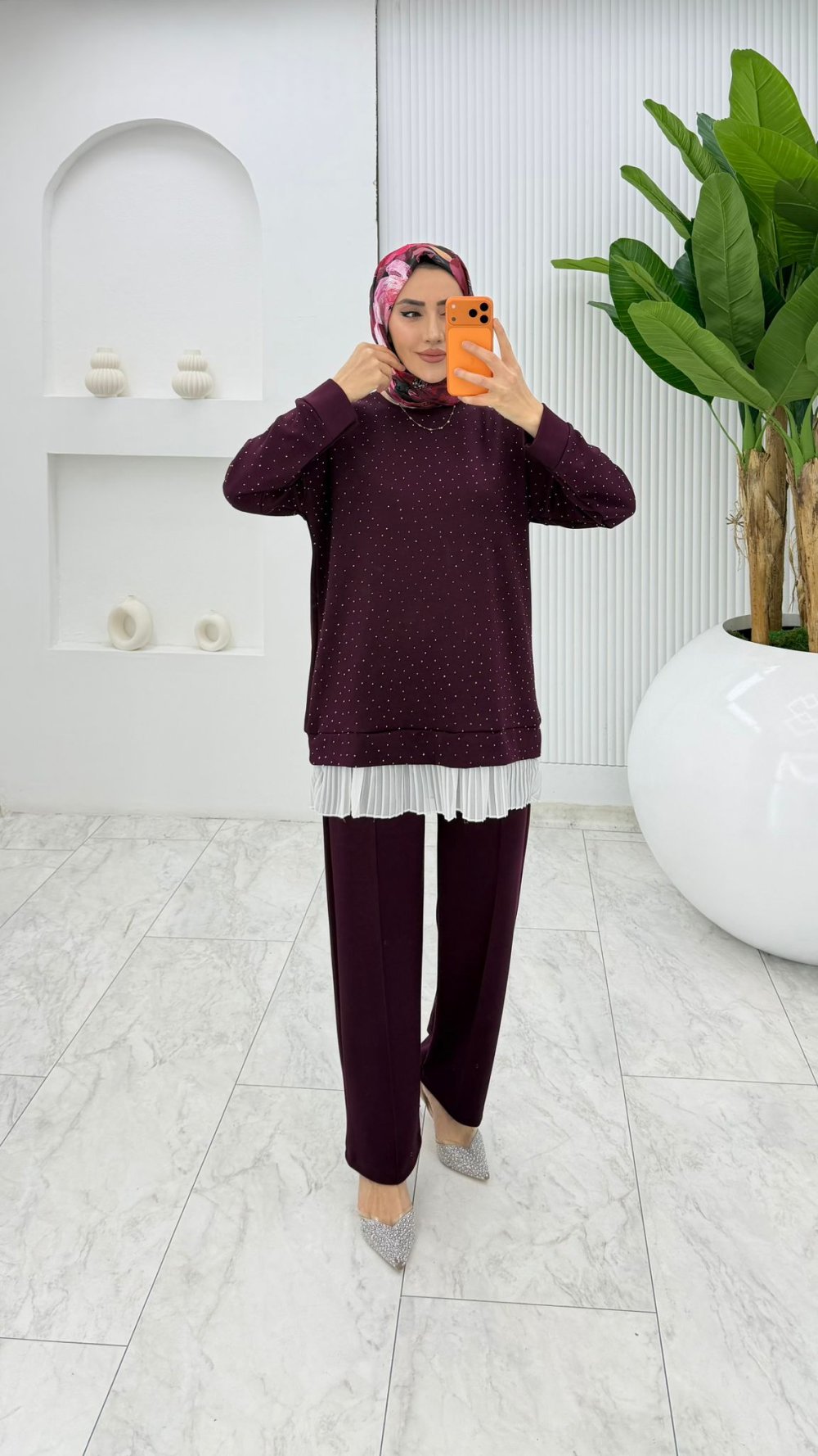 Mürdüm Taşlı Oysho Takım Tesettür Giyim