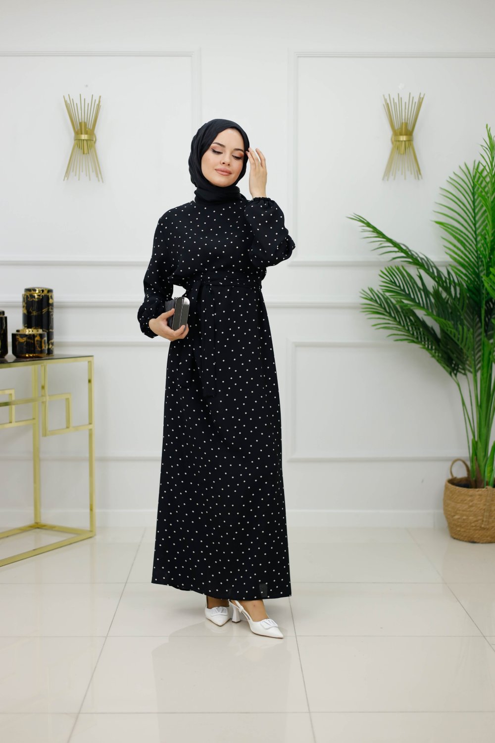 NEHİR ELBİSE -SİYAH PUANTİYELİ