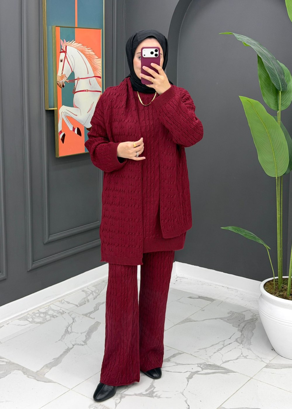 Neva Atkılı Triko Takım - Bordo
