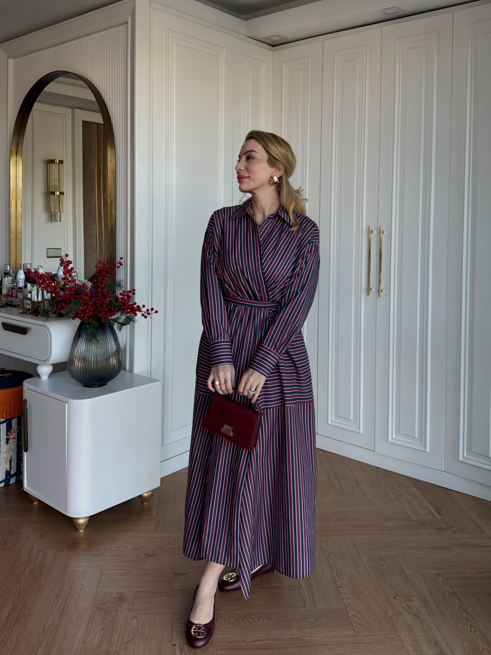 Elbise Çizgi Desenlidir.