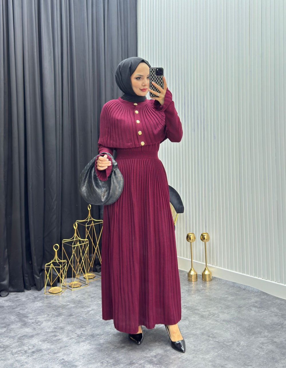 Pelerinli Elbise Bordo Bordo