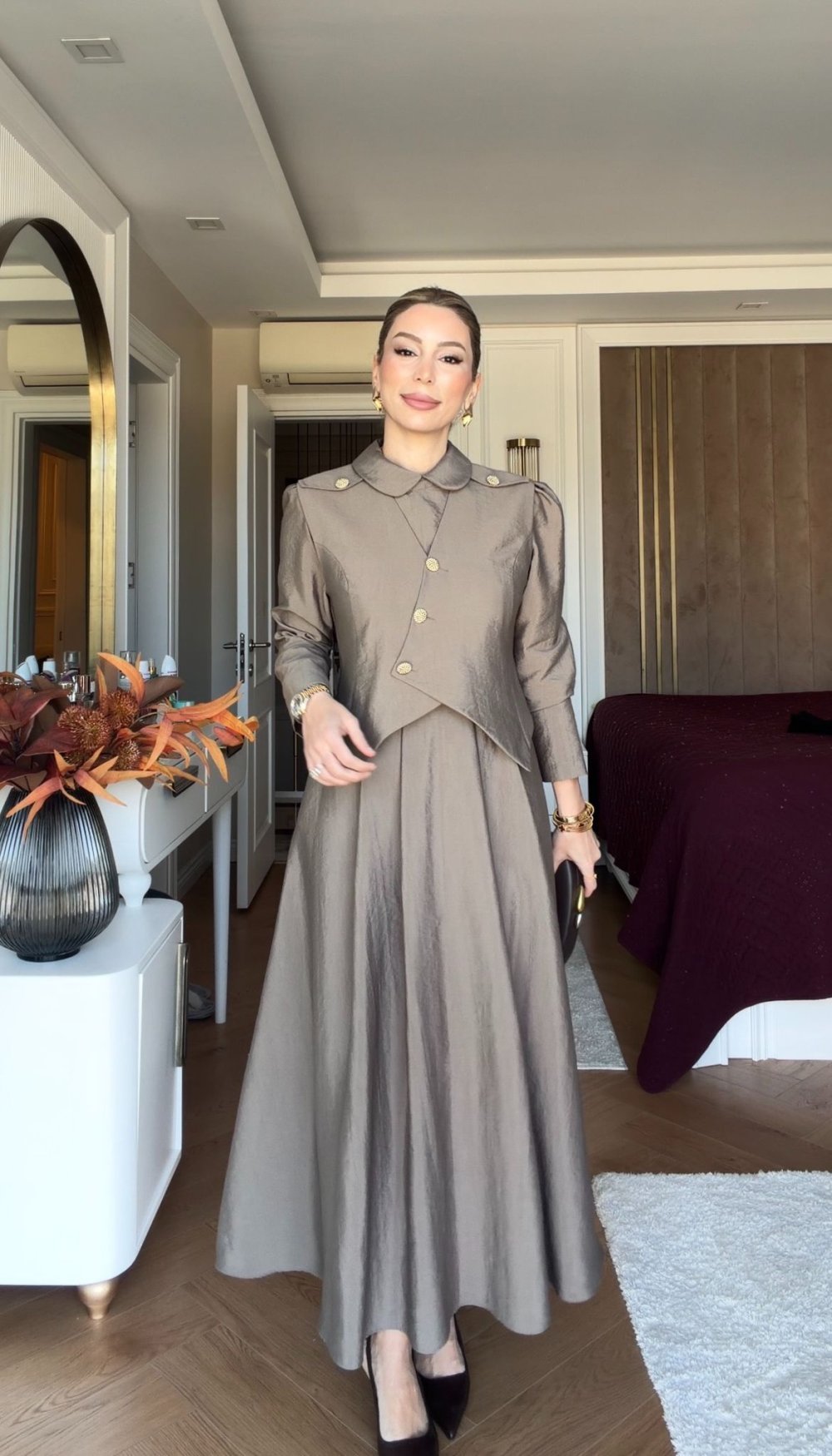 Pelin Elbise Takım Vizon