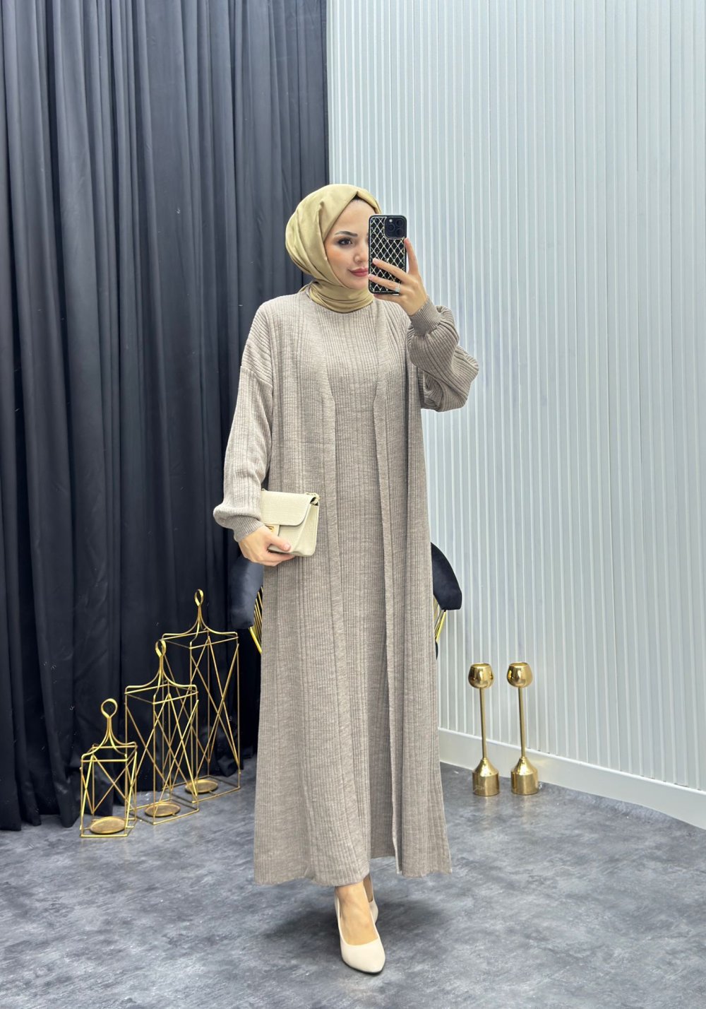 hırka elbise olmak üzere 2 parçadan oluşmaktadır elbise sıfır kolludur