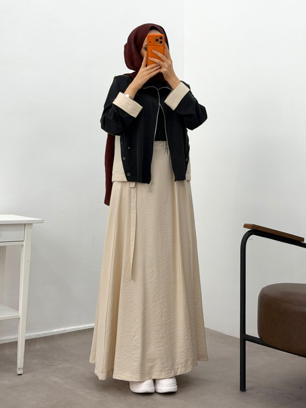 Etek Kemer Detaylı 102 cm İç Göstermez