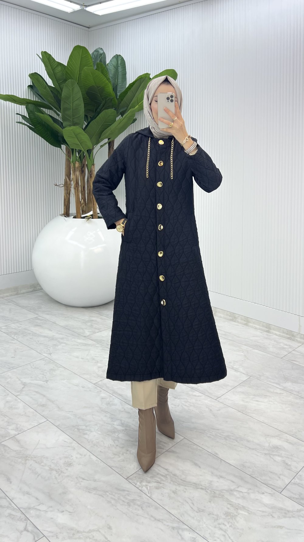 Siyah Leman Kapitone Mont Tesettür Giyim