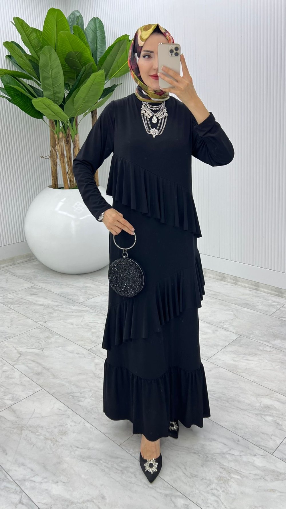 Siyah Premium Tijen Elbise Tesettür Giyim