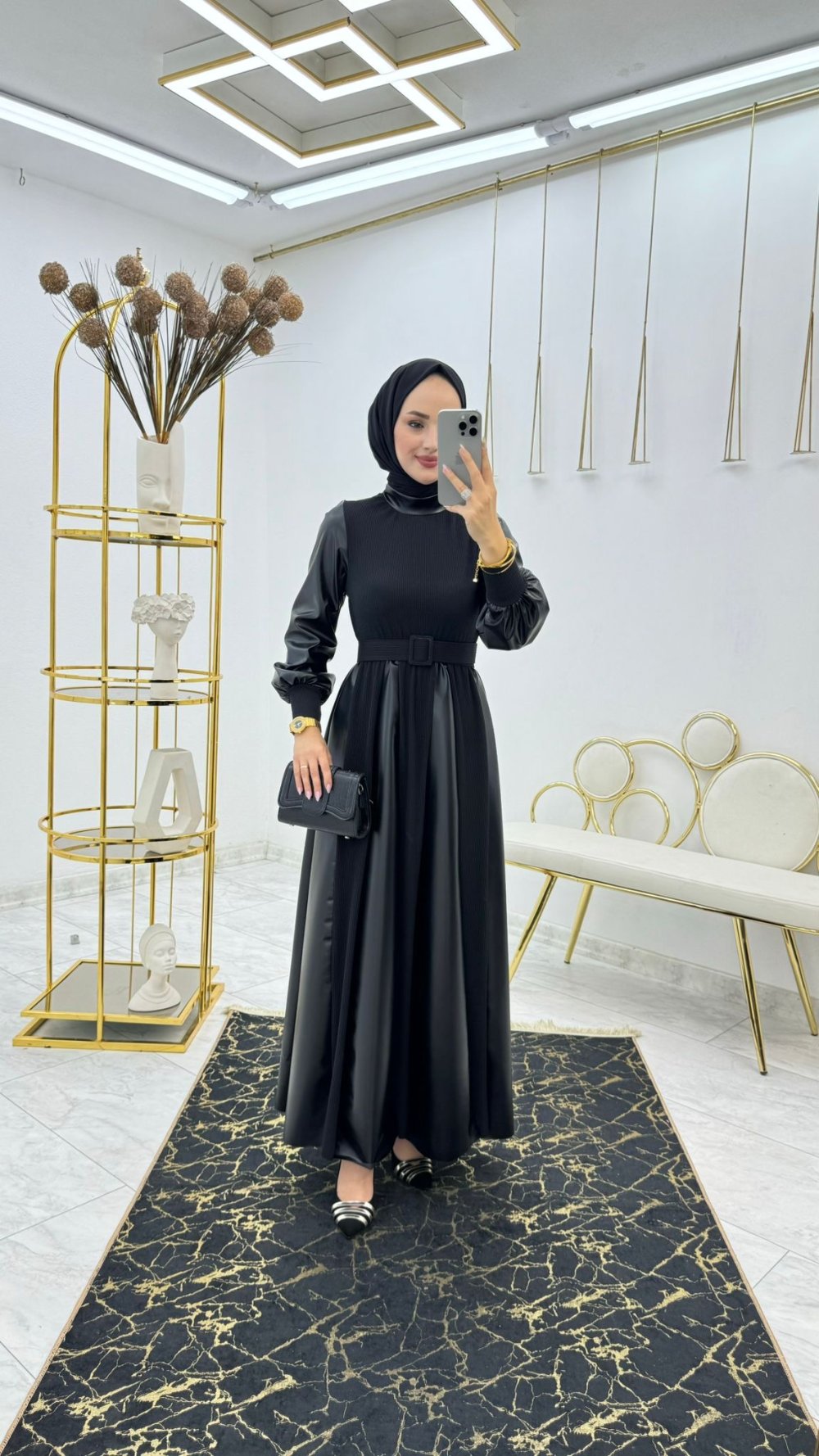 Siyah Prenses Deri Elbise Tesettür Giyim
