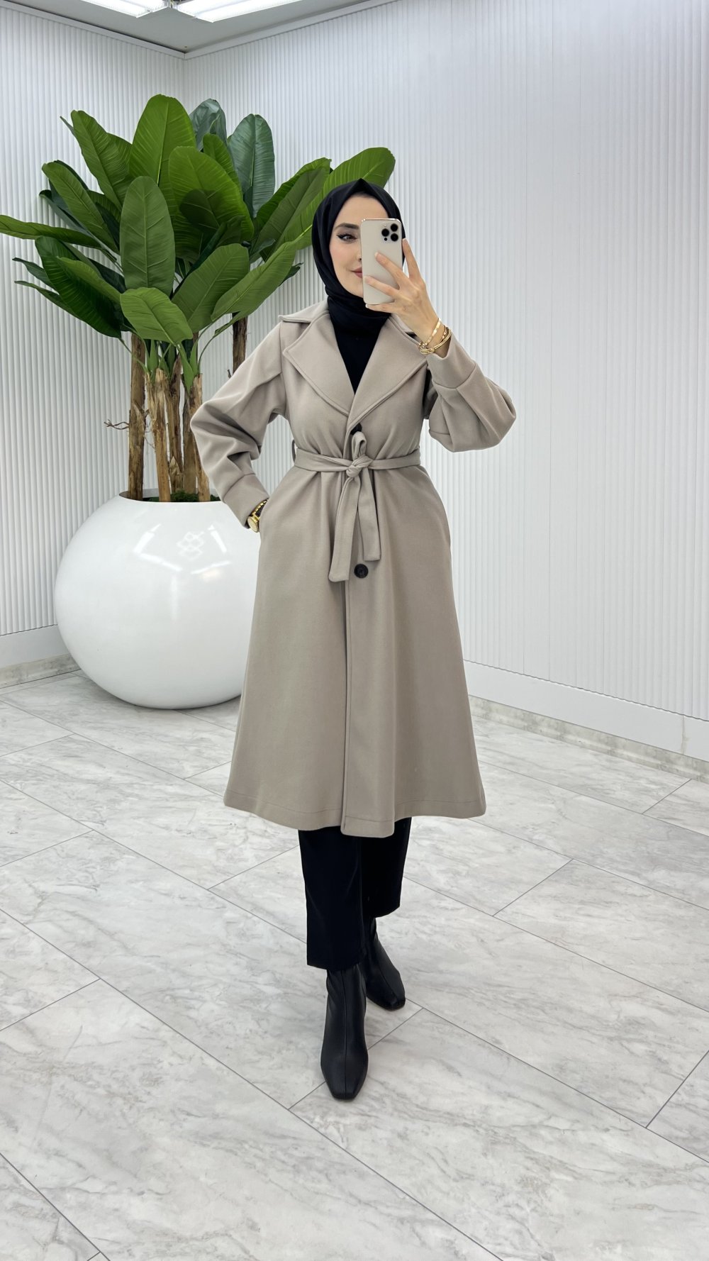 Taş Premıum Defne Kaşe Kaban Tesettür Giyim