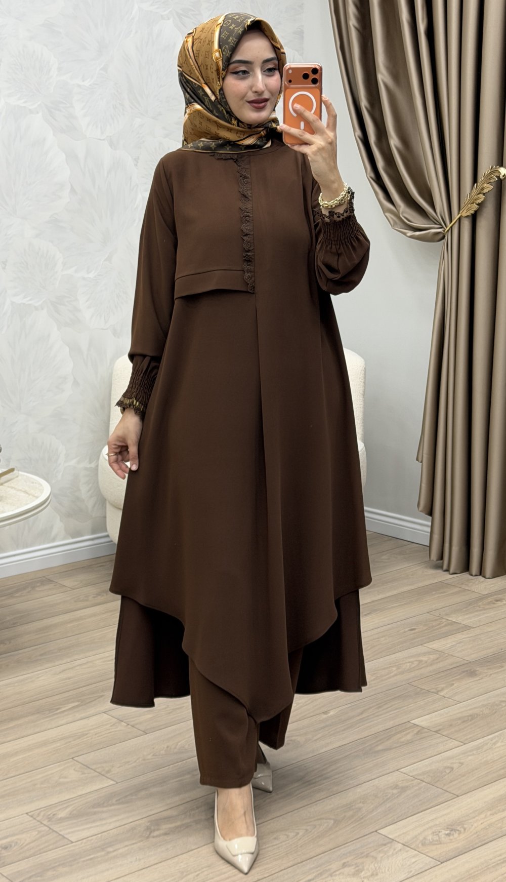Rahatlık ve şıklığı bir araya getiren Tülin Takım,sade ama zarif duruşuyla günlük kombinlerinizi güçlendiriyor. Yumuşak kumaşı ve esnek yapısı sayesinde gün boyu konfor sunarken, modern kesimiyle stil sahibi bir görünüm yaratır.