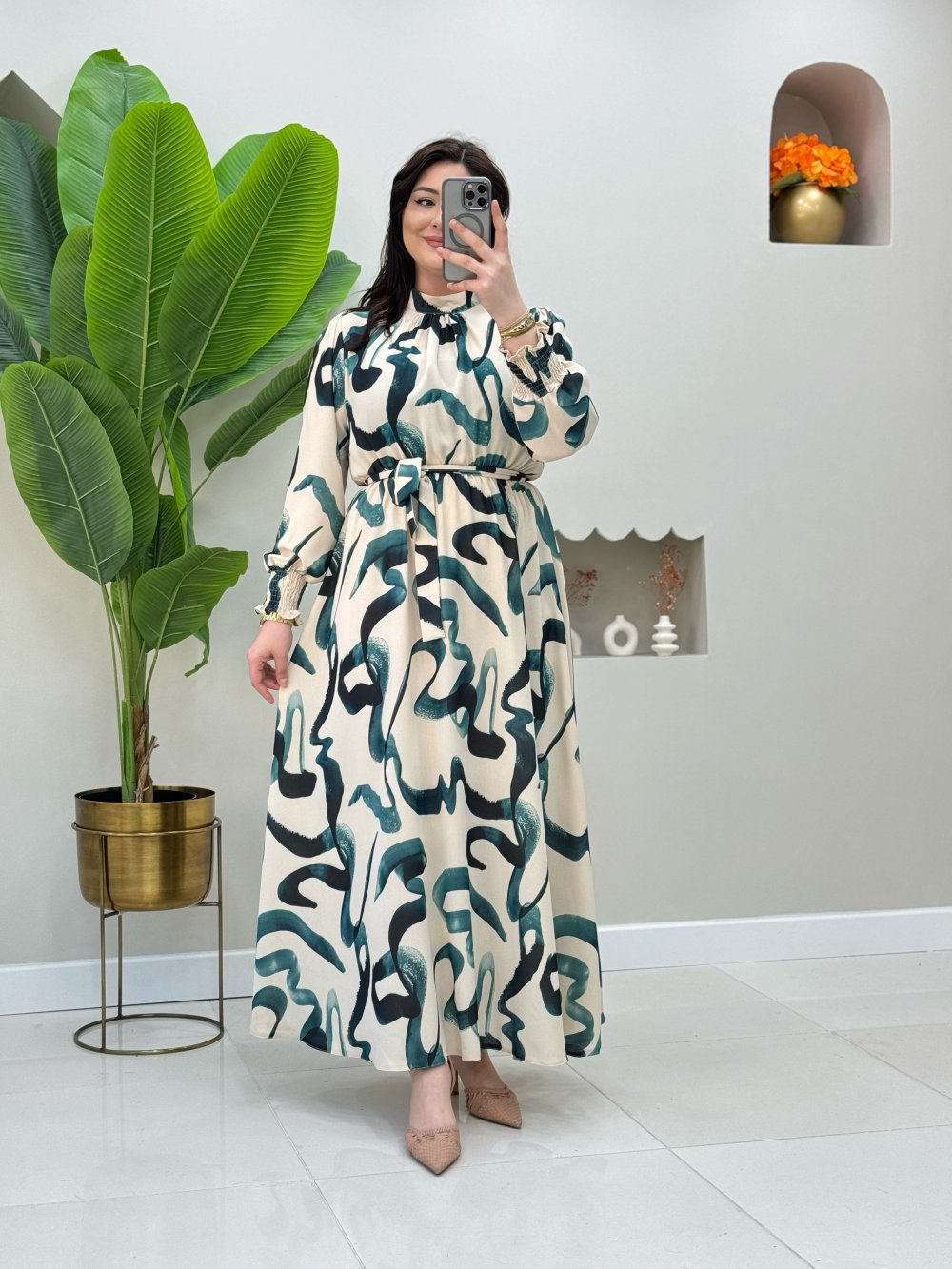 Elbise kolları ve beli lastiklidir.