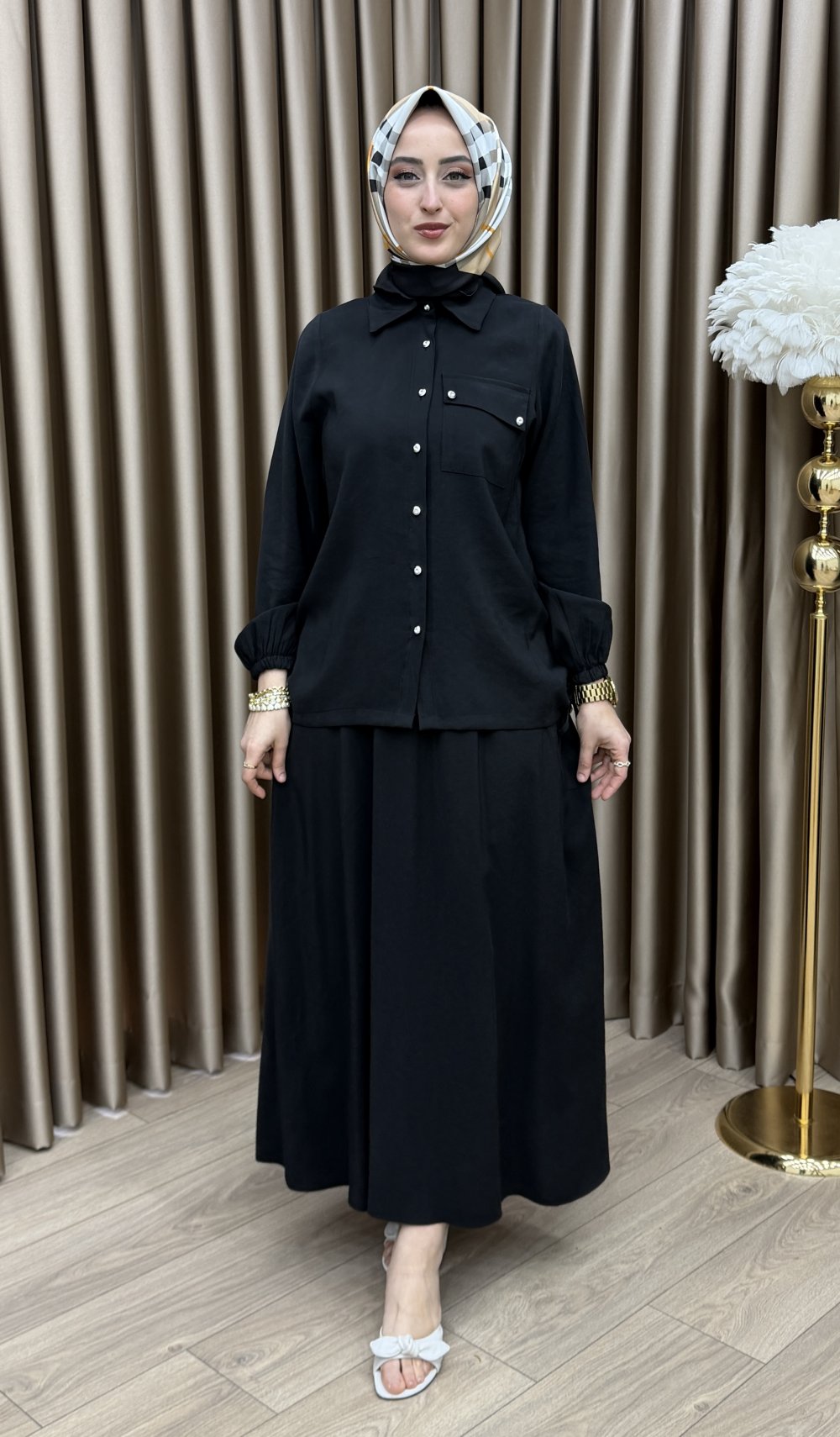 Rahatlık ve şıklığı bir araya getiren Verda Etek Takım,sade ama zarif duruşuyla günlük kombinlerinizi güçlendiriyor. Yumuşak kumaşı sayesinde gün boyu konfor sunarken, modern kesimiyle stil sahibi bir görünüm yaratır.