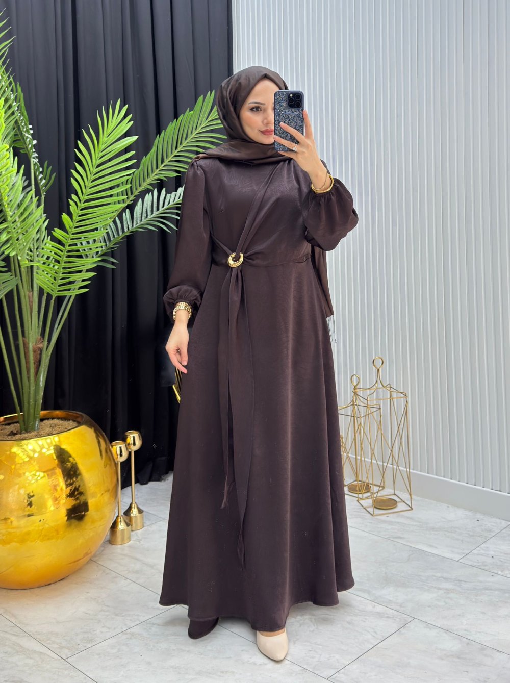 Viral Elbise Kahverengi Kahverengi