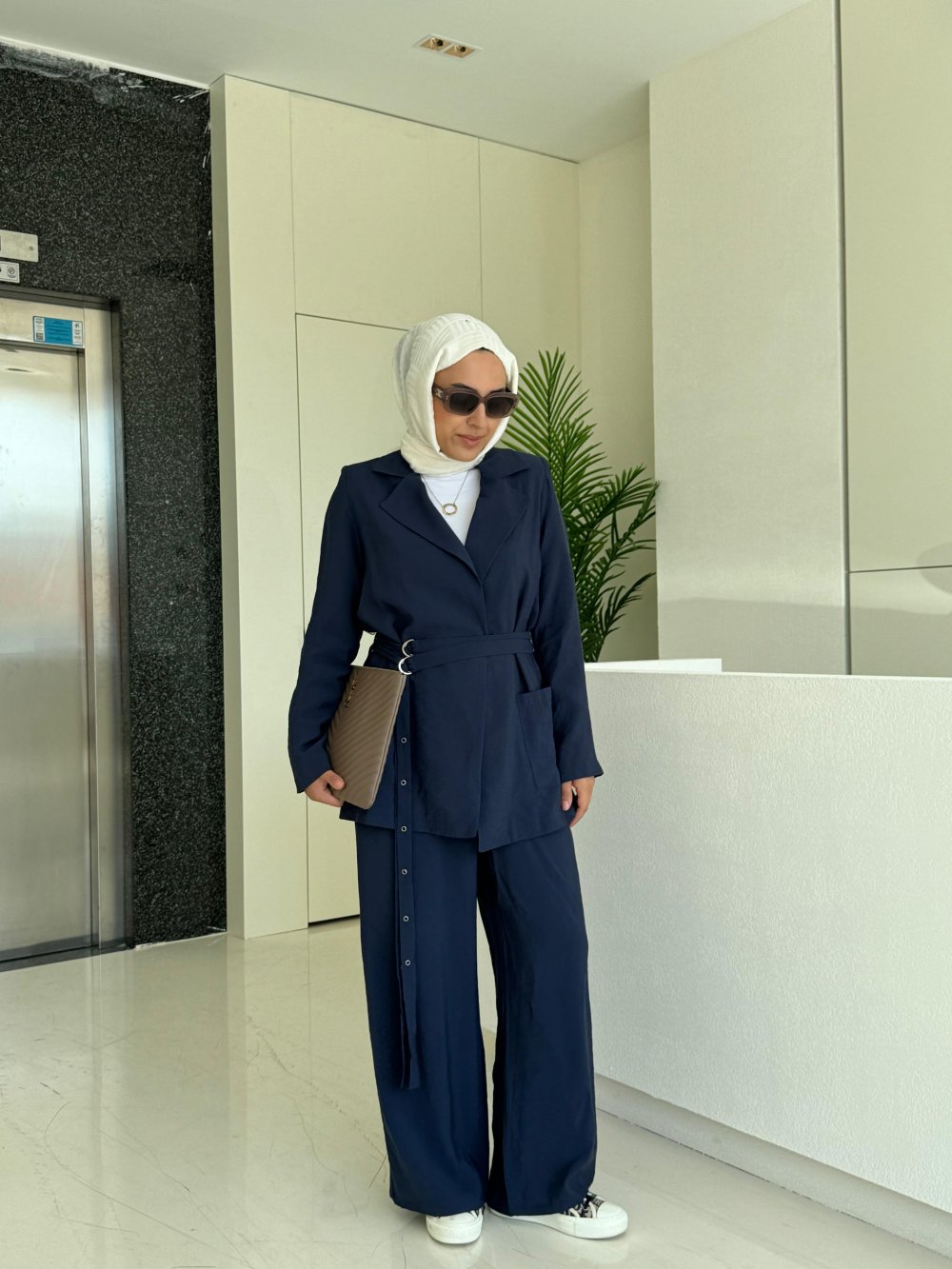 Pantalon ön kısmında fermuar ve düğme bulunmaktadır .Arka kısmı lastiklidir.