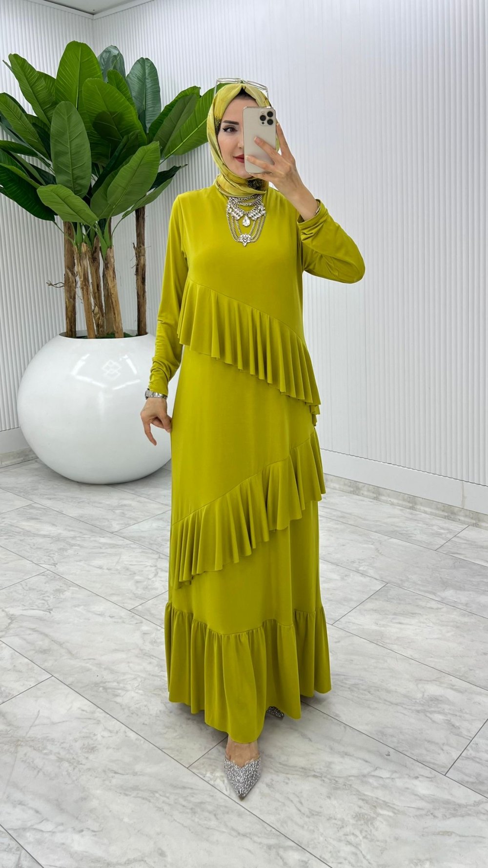 Yağ Yeşili Premium Tijen Elbise Tesettür Giyim